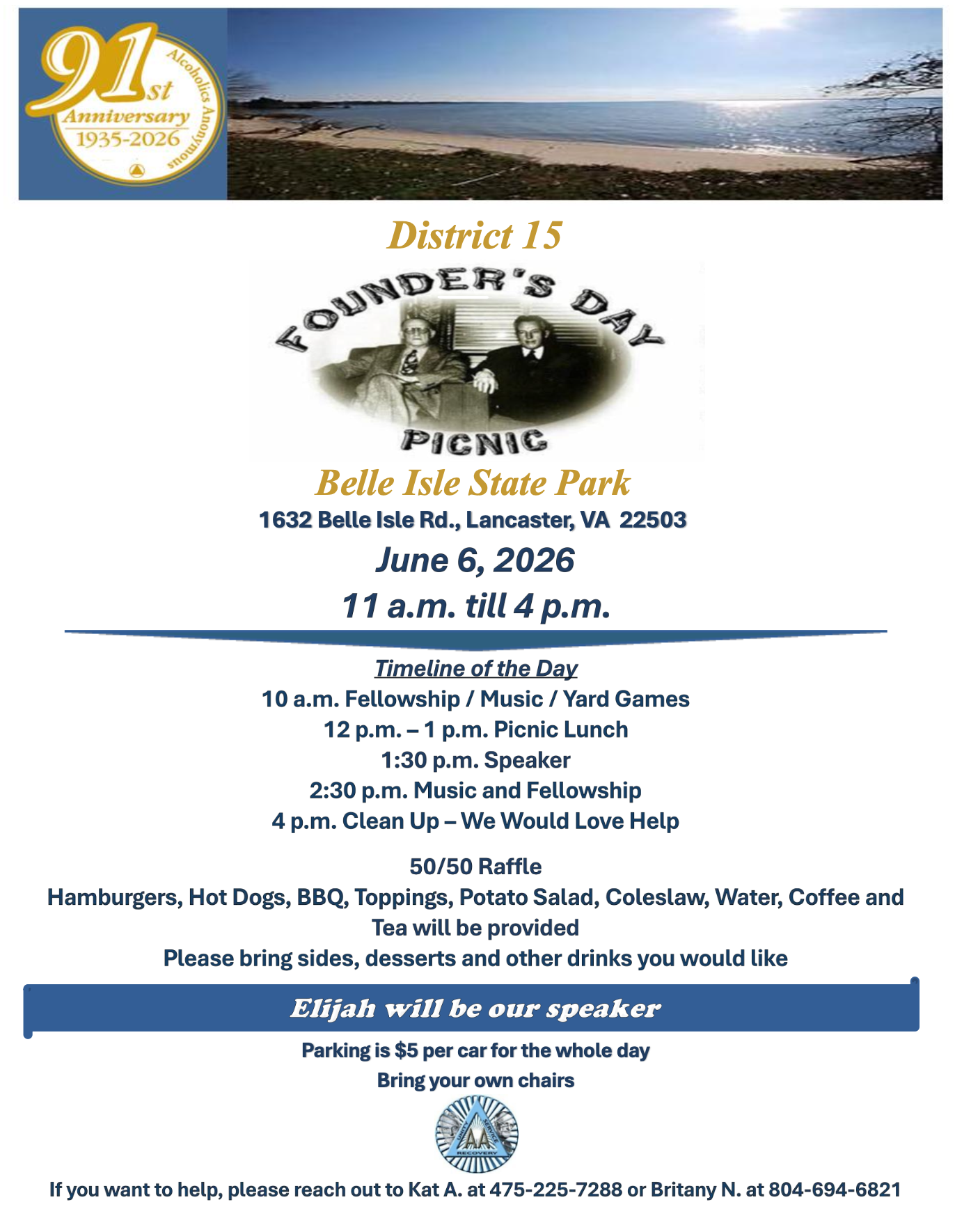 Check back regularly for upcoming event flyers for the Founder’s Day Picnic at Belle Isle State park on Saturday June 6th, and The Gratitude Dinner at The Church Of The Nazarene in Whitestone Saturday November 7th.
